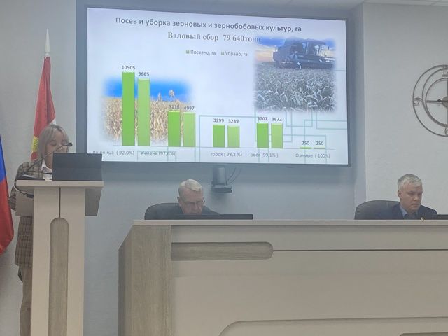 Обмолочено 21822 га зерновых и зернобобовых культур при фактически посеянной площади 25442 га. Намолочено 79 640 тонн.