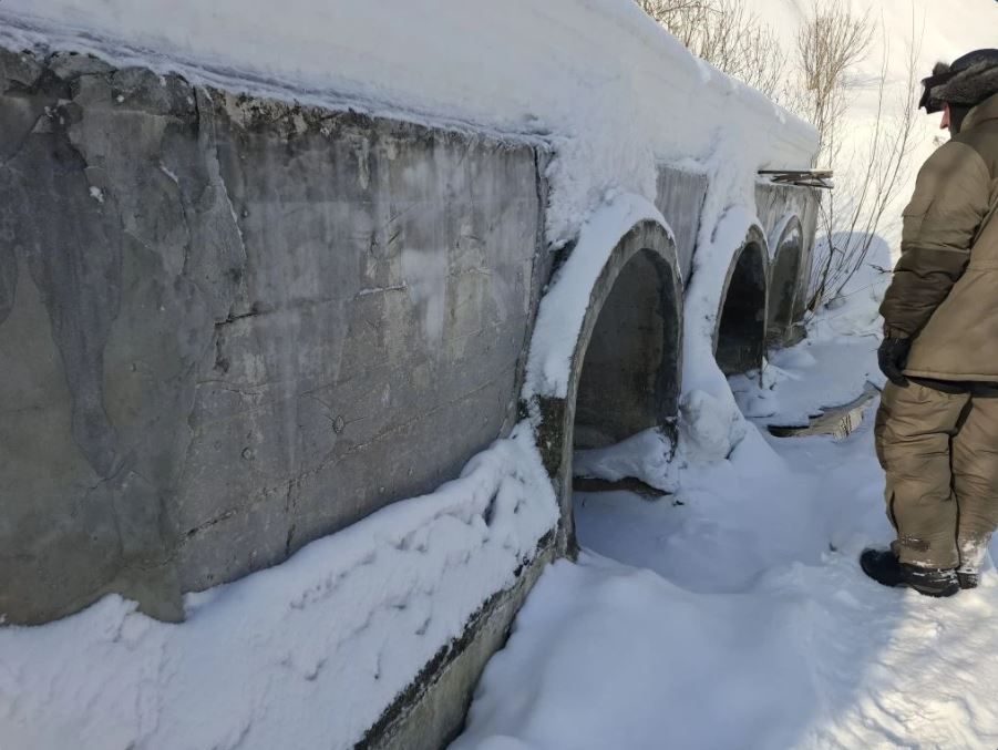 Специалисты администрации проводят осмотр всех гидротехнических сооружений округа. Проверяется целостность конструкций, наличие наледи и снежных заторов, которые могут помешать нормальному проходу воды.