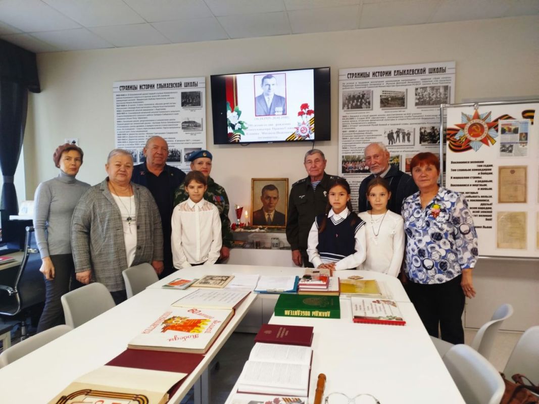 В музее Елыкаевской школы состоялась встреча поколений. В гости к ребятам в этот памятный день приехали председатель Совета ветеранов округа Евгений Кулеш. Своими воспоминаниями о Михаиле Ивановиче поделился Александр Грищенко, руководитель военно-патриотического клуба «Десантник», ветеран местного самоуправления и бывшая глава Елыкаевского поселения Любовь Зонова, Валентина Кызина, журналист Александр Круковский,