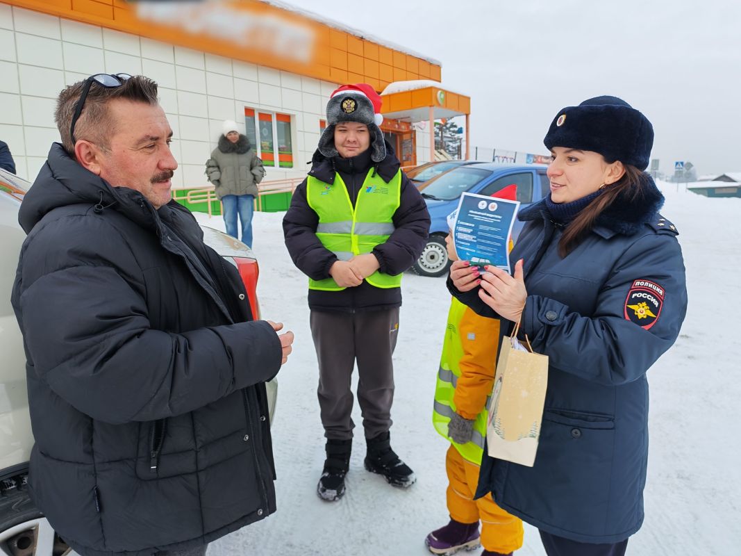 Яркие мандарины стали сладким символом заботы о жизни и здоровье. Вместе с ними стражи порядка и ребята из отряда ЮИД вручали жителям села полезные знания о безопасности на зимней дороге. Каждый участник акции получил не только фрукт, но и важный профилактический подарок: пешеходам дарили памятки с алгоритмом безопасного перехода проезжей части, а водителям — специальные листовки с рекомендациями по управлению автомобилем в сложных зимних условиях.