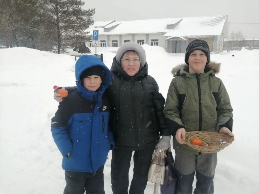 Мальчики клубных формирований с улыбками вручали женщинам мандарины.