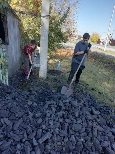 Старшеклассники Карим Султанов, Максим Кузьмичев и Нурбек Ташматов перекидали уголь в углярку.Активи...