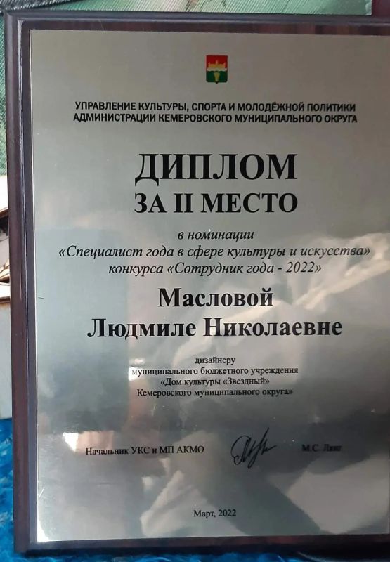 В ЦРН я проработала вплоть до 2018 года, после чего попала в ДК «Звёздный», где и работаю по настоящее время. Здесь мне пригодились все мои навыки: и подготовка эскизов, и шитье, и макетирование. А особенно – навыки работы с детьми, потому что кроме оформления сцены, приходилось шить для них сценические костюмы, готовить и проводить мастер-классы на выездных мероприятиях, участвовать в конкурсах. Думаю, что чаще всего мы были успешны, что подтверждается многочисленными грамотами и дипломами. Самым значимым лично для меня стал конкурс 2022-го года «Сотрудник года», где я получила Диплом за 2-е место в номинации «Специалист года сфере культуры и искусства».