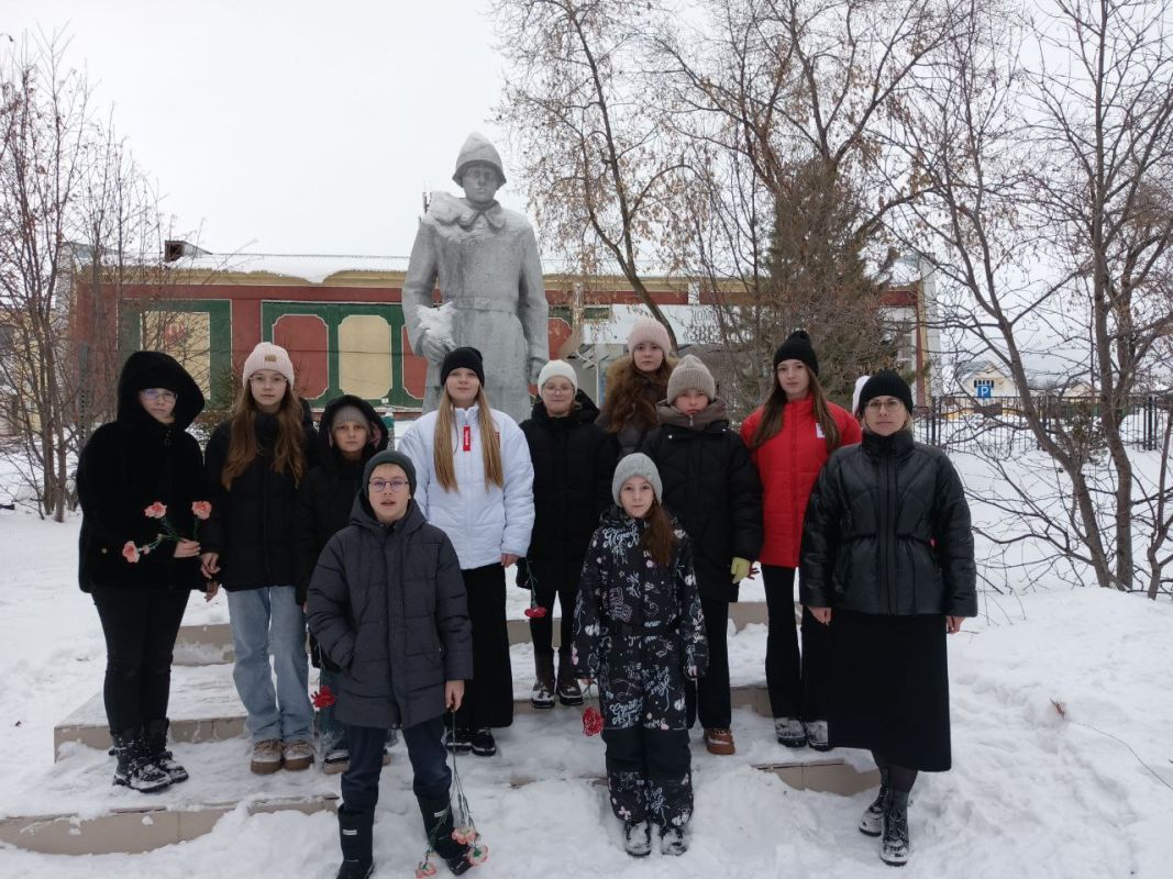 Они очистили от снега памятник, узнали историю этого важного дня, услышали рассказы о героизме наших солдат во время Великой Отечественной войны. Минутой молчания участники мероприятия почтили память всех павших воинов, а затем возложили цветы к памятнику.
