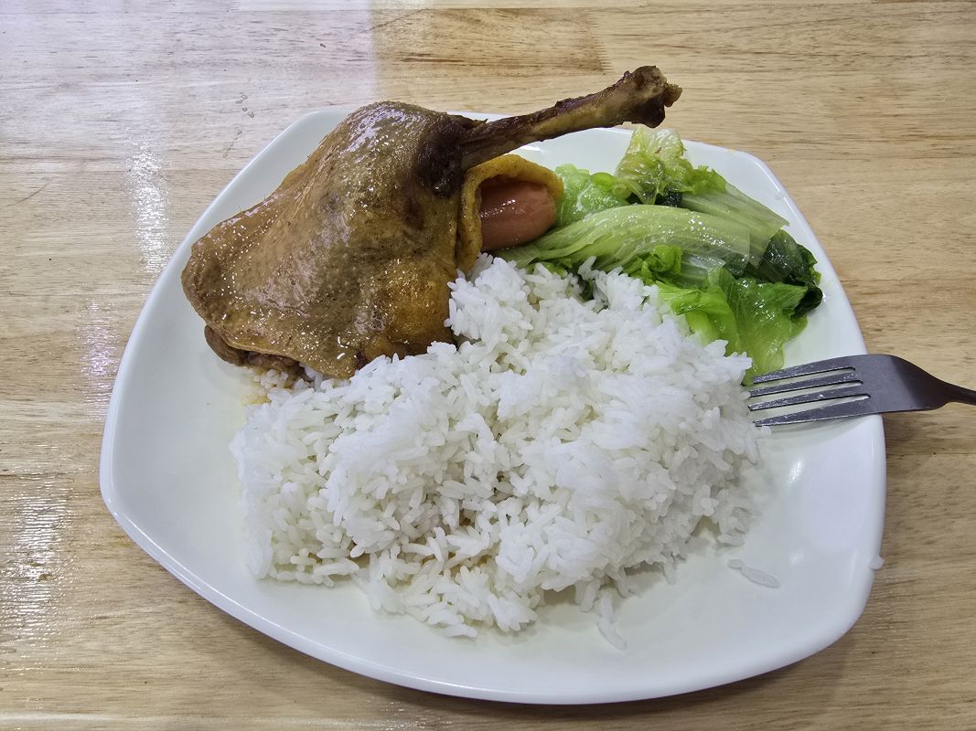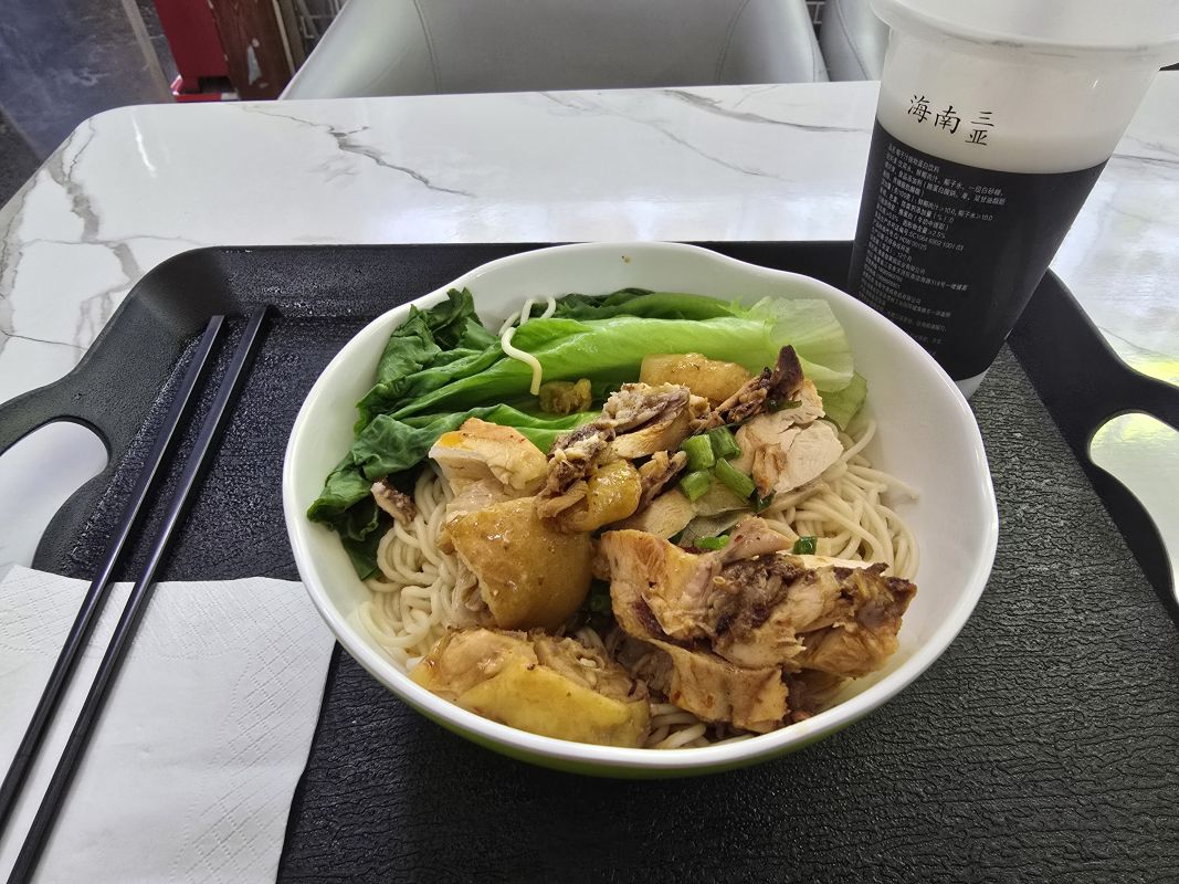 Как правило, я предпочитаю питаться в небольших кафе для местных. В первый же день я проверила одно кафе рядом с отелем. На второй день я нашла свое идеальное место – кафе с куриной лапшой. Обычный куриный суп идеально помогал подкрепиться после пляжа, был неострым и довольно легким, так что я стала регулярно питаться там, тем более, что половина порции стоила всего 144 рубля. Половина порции – большая миска, порции в Китае обычно намного больше привычных нам. Еще одно приятное место я нашла по время вечерней прогулки. Это было утиное кафе, где подавали утку в разных видах. Нет, не жирную утку по-пекински, а обычную, которую варят несколько часов. Мне понравилась тарелка риса, политого соусом, с утиной ножкой, колбаской, соевым блином и вареной зеленью. Порция большая, утка – мягкая и сочная, а стоило все какие-то 264 рубля.