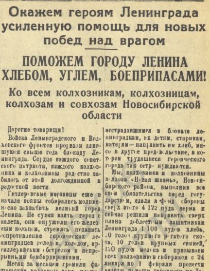 Хоть это номер от 27 января 1943 года, а Кемеровская область была образована за день до его выхода, в нем до сих пор было указано, что это газета Новосибирской области. И даже в шапке письма «Окажем героям Ленинграда усиленную помощь для новых побед над врагом», которое было размещено на третьей полосе, было написано следующее: «Поможем городу Ленина хлебом, углём, боеприпасами! Ко всем колхозникам, колхозницам, колхозам и совхозам Новосибирской области». Но это неудивительно, ведь выпуск газеты в типографию отдавался за день или два до его выхода – поменять содержание номера уже было просто невозможно.